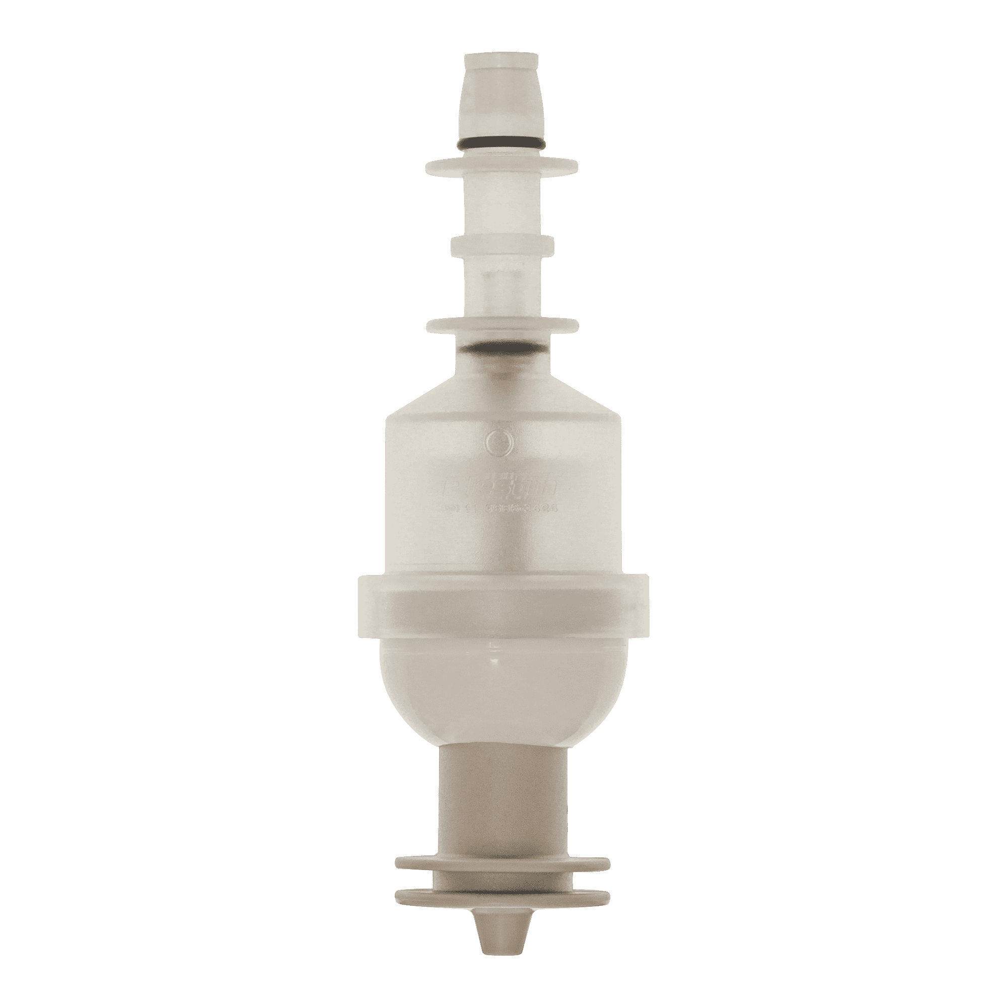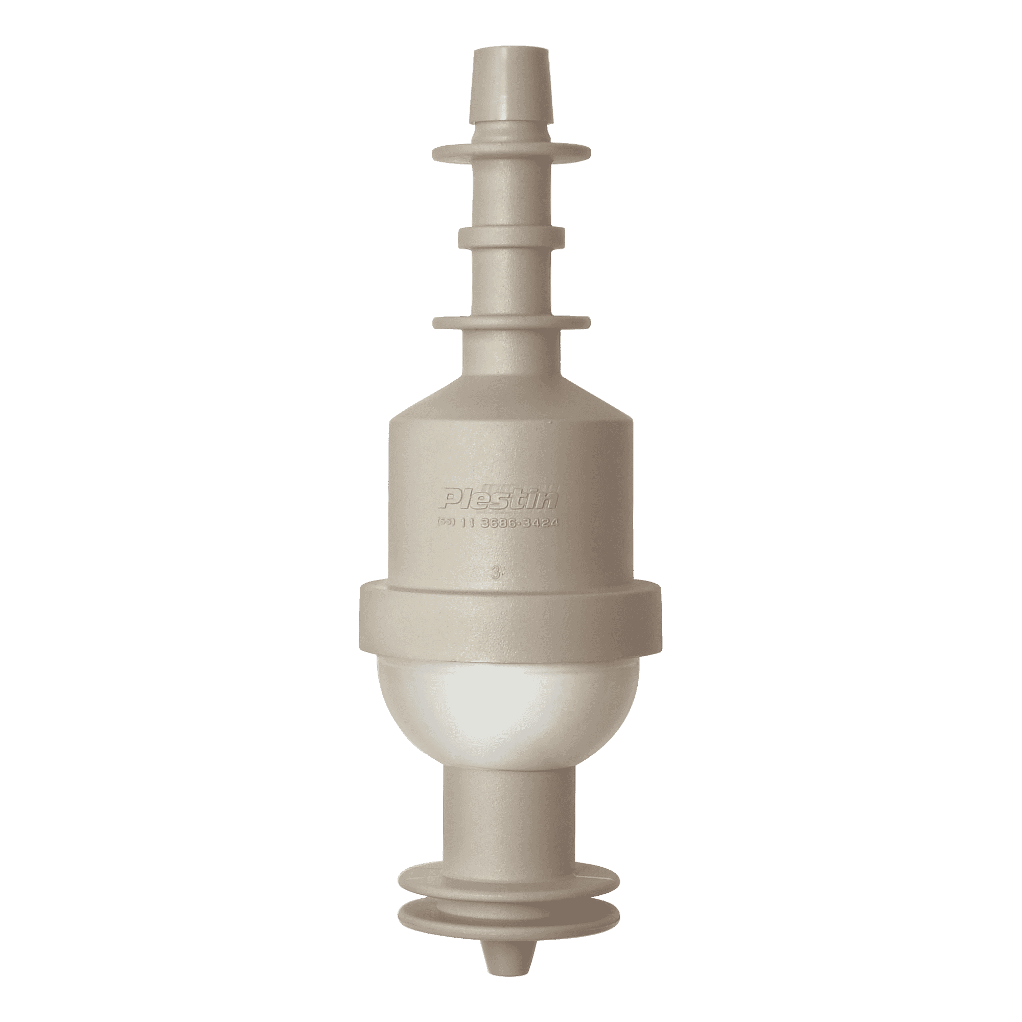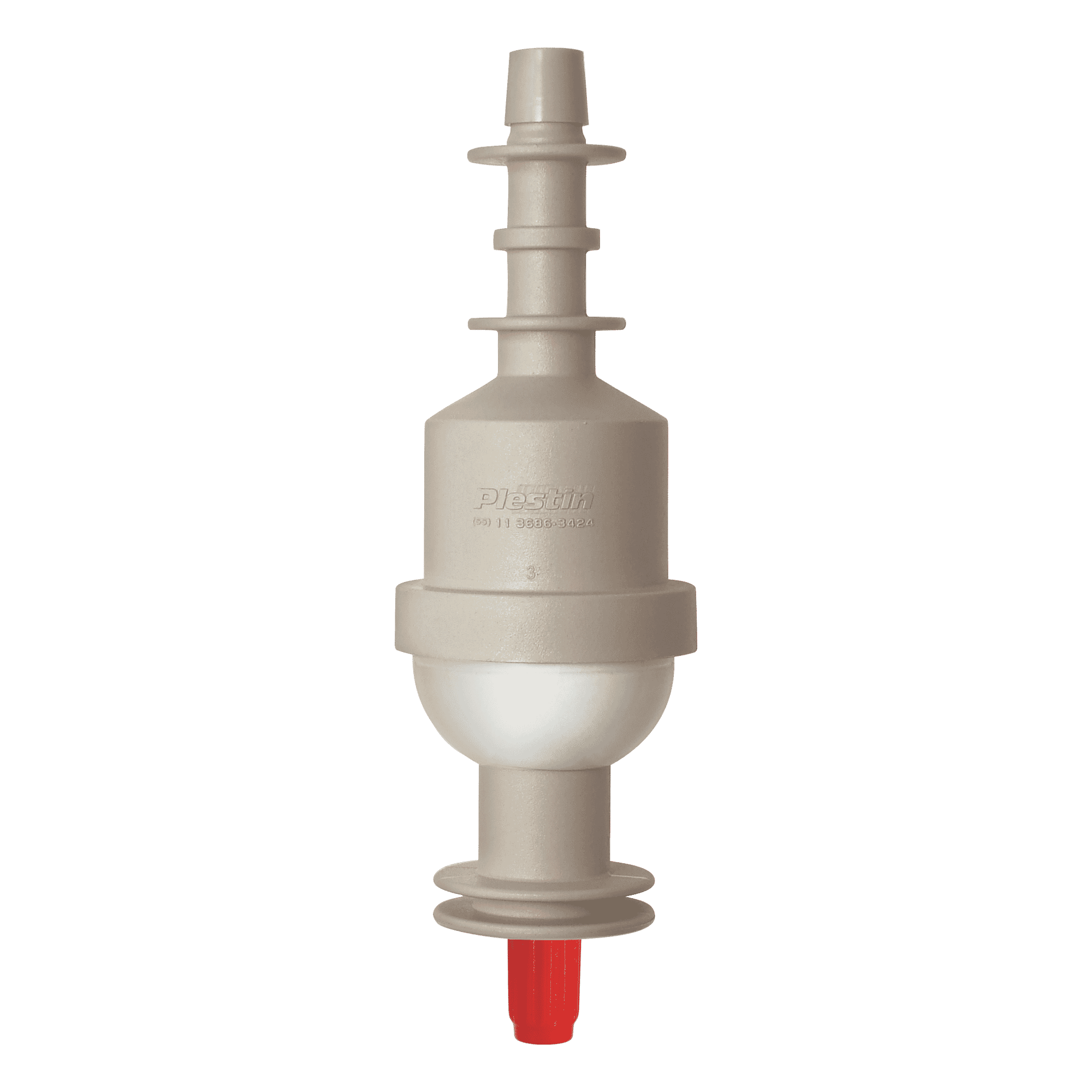 Fabricado sem cola, em material termoplástico resistente ao sabonete líquido e ao álcool gel, montado com válvula e esfera em aço inox, dosa 1,0 grama por acionamento.