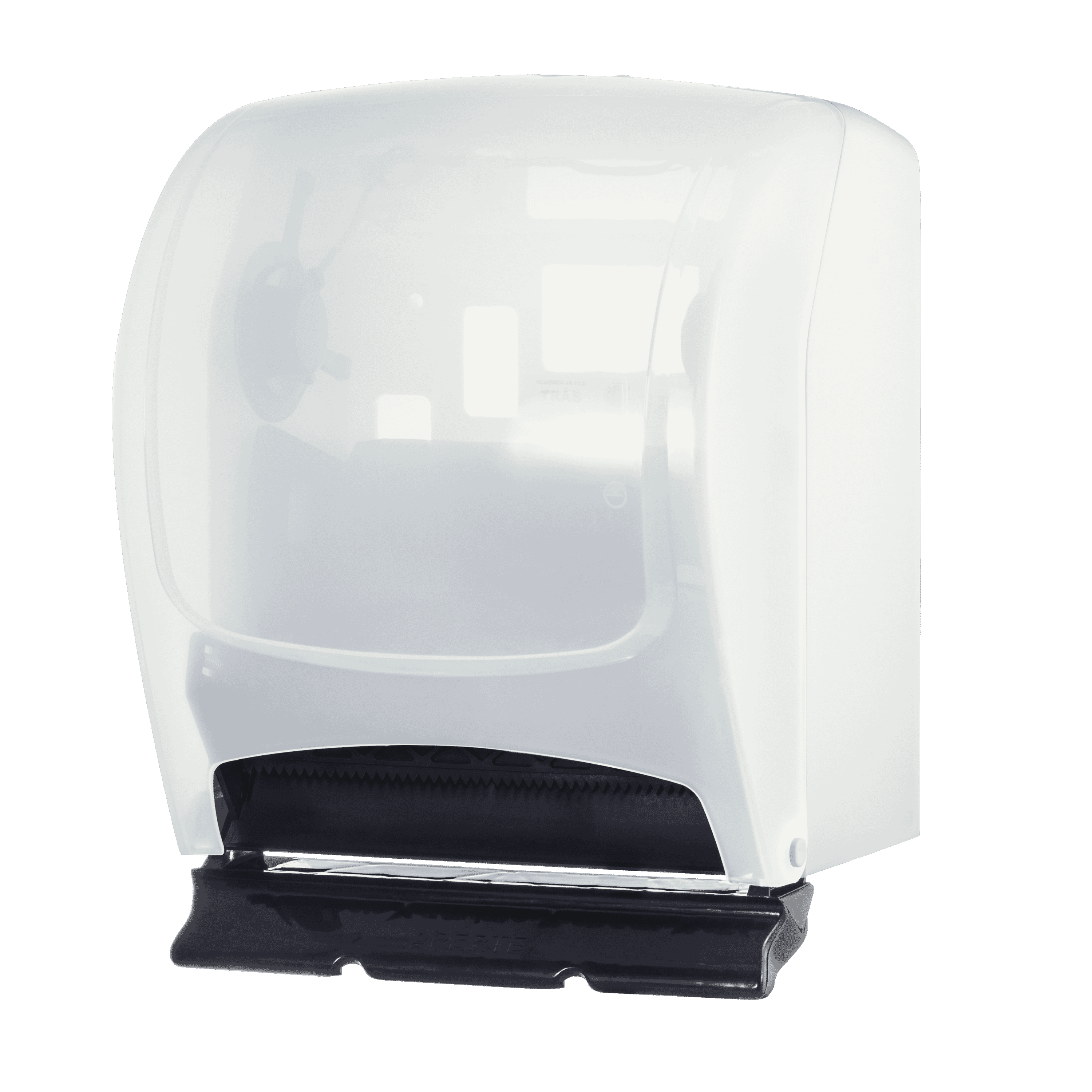 Trabalha com papel toalha em bobinas de 196 a 200 mm de largura.